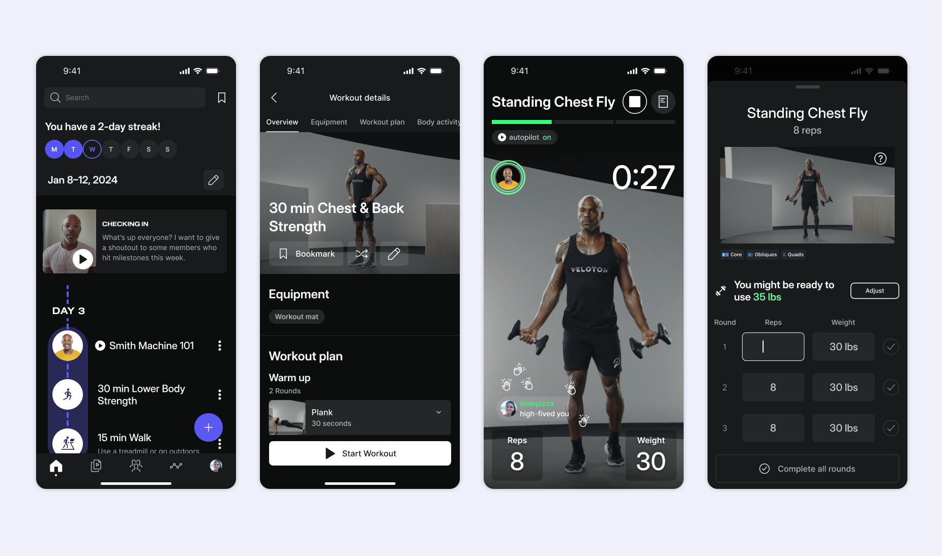 1 of 2 lead designers for a cross-team discovery phase, to help concept a strength-focused app for Peloton at the gym. Designs from this round of vision work led to the development of the official Strength+ app, which launched in Dec 2024.